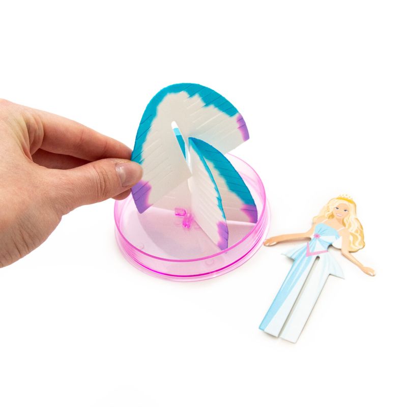 Вълшебната рокля на принцеса на Kidea. Този уникален комплект ще плени всяко дете, което се интересува от наука и експерименти, както и тези, които обичат света на фантазията и принцесите. Пакетът включва картонени компоненти за сглобяване, основа и специални торбички за вода. След като сглобите конструкцията, просто излейте включената вода върху роклята на принцесата, за да започнете необикновения процес на разцъфване на нейното творение. Само след час ще видите първите резултати – роклята е покрита с цветни кристали. Това е не само чудесна форма на игра, но и вдъхновяваща възможност за учене и развиване на любопитство към света. Перфектен подарък за млади изследователи!