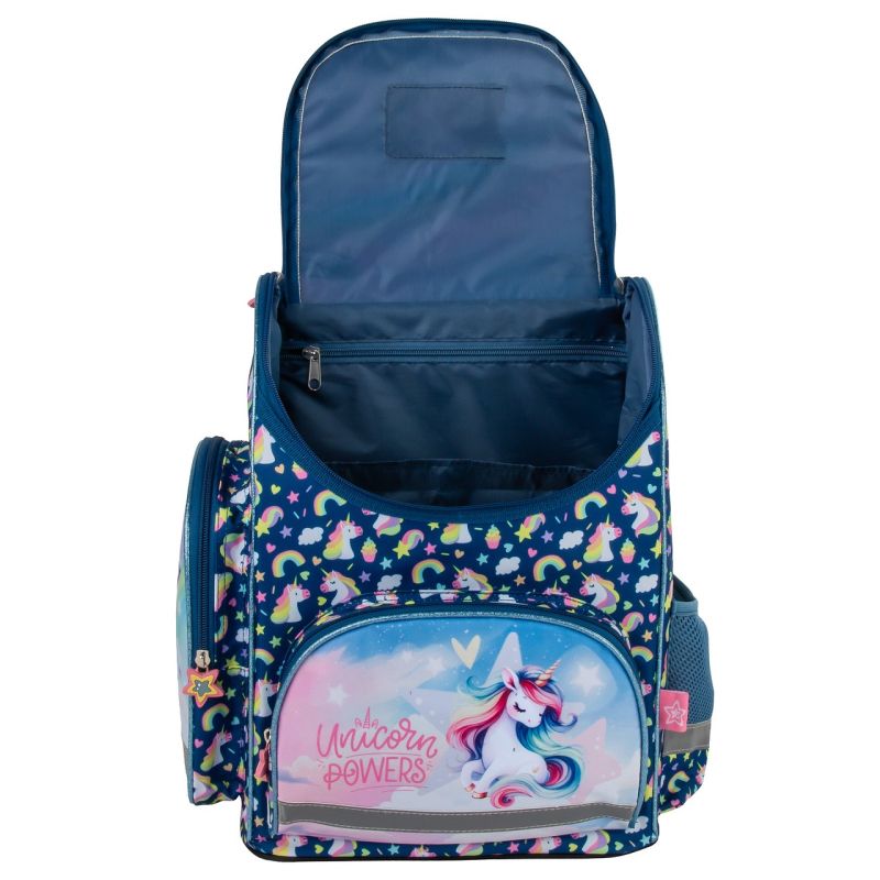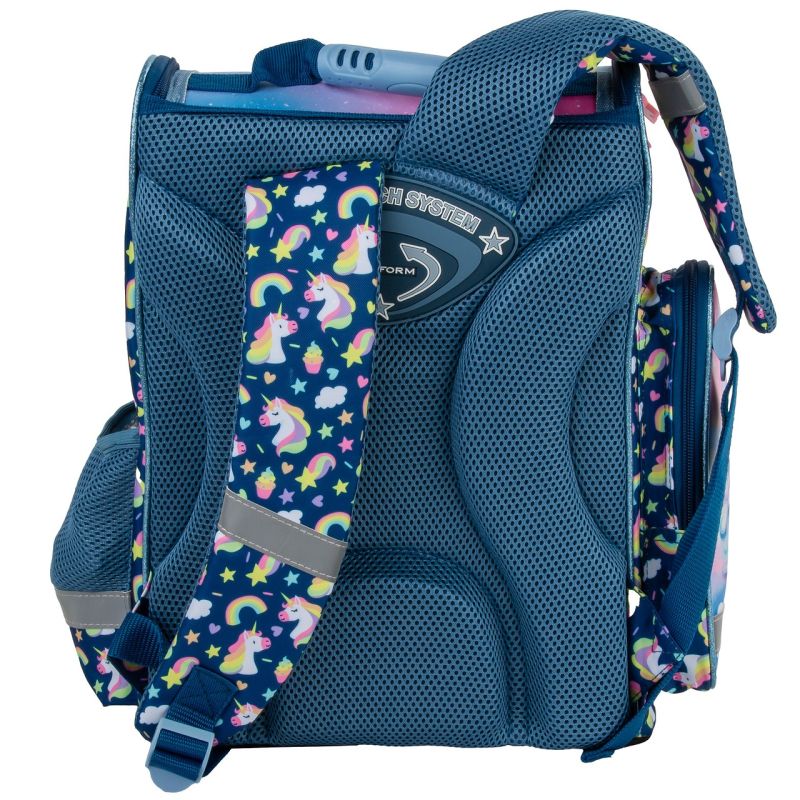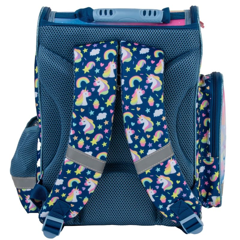 Светлоотразителна лента е разположена от всичките четири страни на раницата.