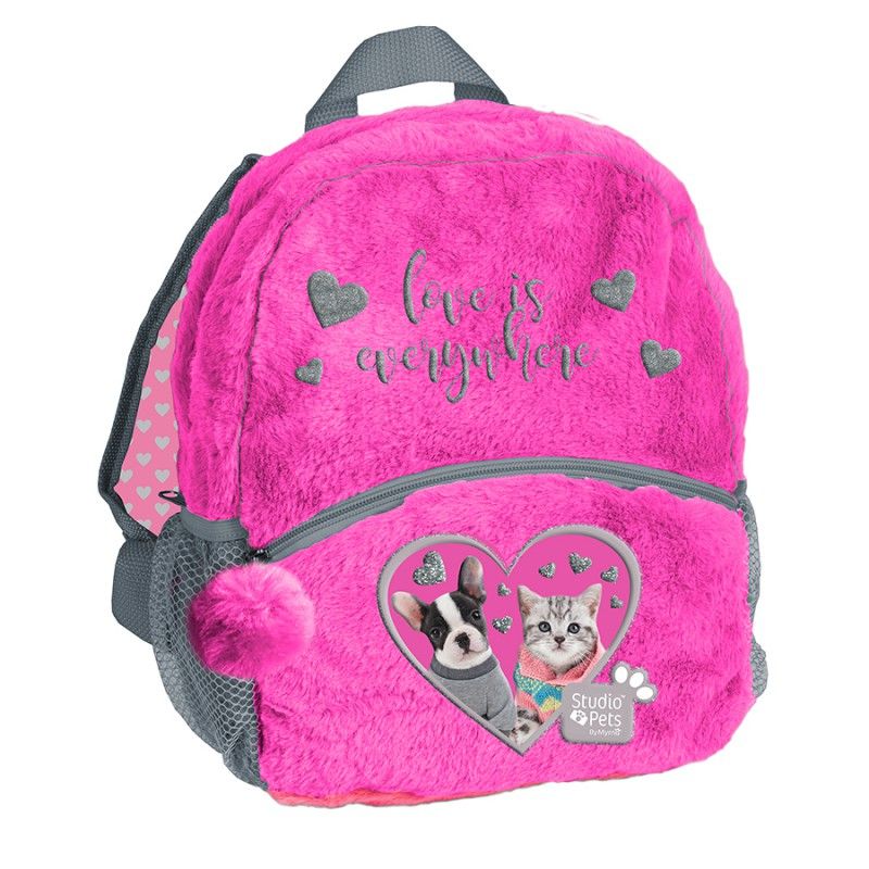 STUDIO PETS малка плюшена раница с две отделения и два странични джоба. Размери: 29 х 24 х 9 см