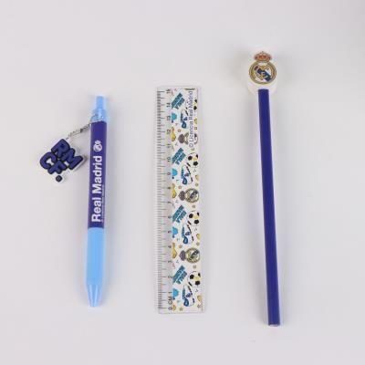 Ученически комплект Real Madrid от 4 части - моливник за бюро, линия, химикалка, молив с гума-фигура