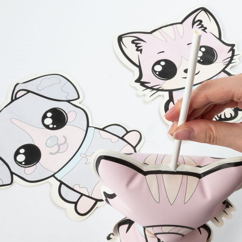 Вълшебни животни за рисуване с вода. Включени са две играчки. Помолете възрастен да надуе фигурката с помощта на включената тръбичка. Когато извадите тръбичката, клапанът автоматично ще се затвори, задържайки въздуха вътре. Напълнете включения маркер с вода и боядисайте фигурката – цветовете ще се появят магически навсякъде, където влязат в контакт. След като изсъхнат, те изчезват, което ви позволява да започнете всичко отначало. Те са и чудесна играчка за баня. Комплектът включва две фигурки и маркер, пълен с вода.