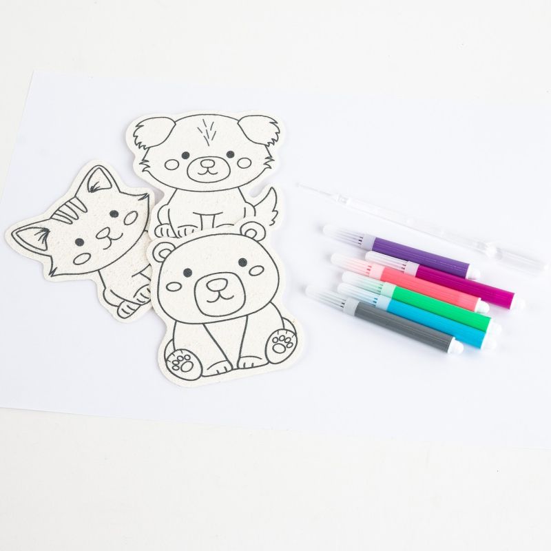 Магически карти, активирани с вода. Комплектът включва три магически карти във формата на плюшено мече, котка и куче, пипета за прецизно дозиране на вода и шест цветни маркера. Просто нанесете капки вода върху желаните зони и материалът започва да набъбва, създавайки 3D ефект. Тази комбинация от наука и изкуство ще плени всяко дете.