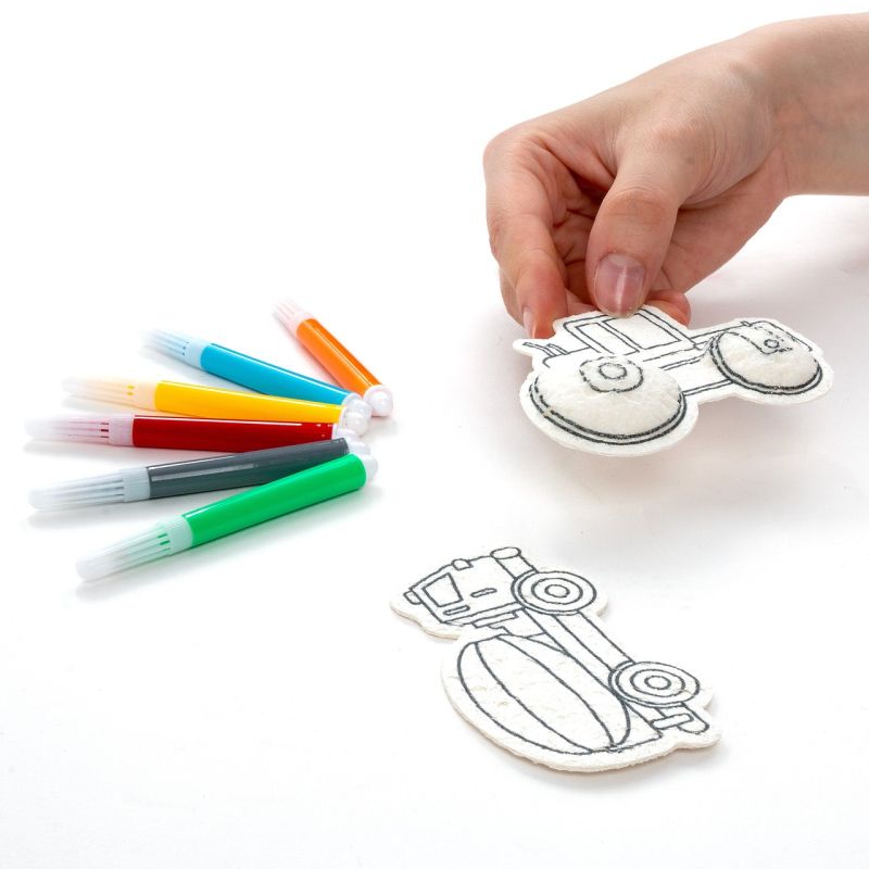 Магически карти, активирани с вода. Комплектът включва три магически карти във формата на превозни средства, пипета за прецизно дозиране на вода и шест цветни маркера. Просто нанесете капки вода върху желаните зони и материалът започва да набъбва, създавайки 3D ефект. Тази комбинация от наука и изкуство ще плени всяко дете.
