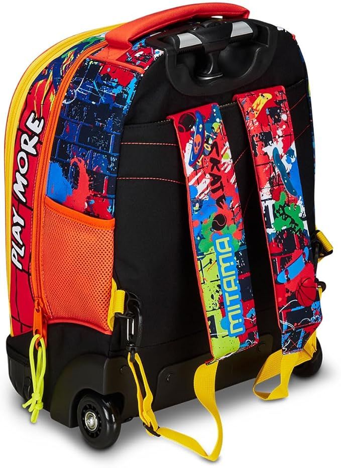 Раница с колела Mitama може да се ползва както за училище, така и по време на пътуване. Подсиленото пластмасово дъно гарантира супер здравина, а огромното вътрешно отделение ще побере всички необходими вещи. Разполага с голям преден джоб и с мегацип Mitama.