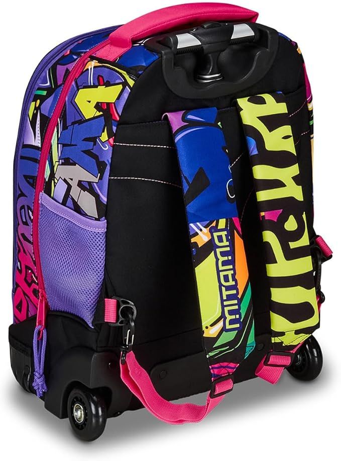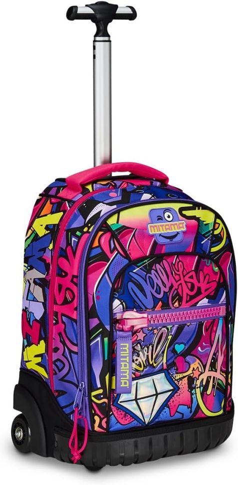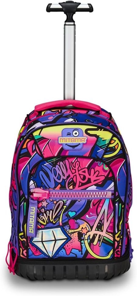Раница с колела Mitama може да се ползва както за училище, така и по време на пътуване. Подсиленото пластмасово дъно гарантира супер здравина, а огромното вътрешно отделение ще побере всички необходими вещи. Разполага с голям преден джоб и с мегацип Mitama.