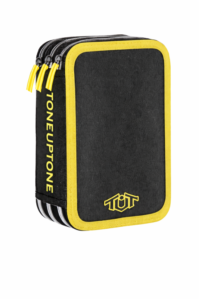 TUT Neon несесер с 3 ципа, ПЪЛЕН, жълти кантове