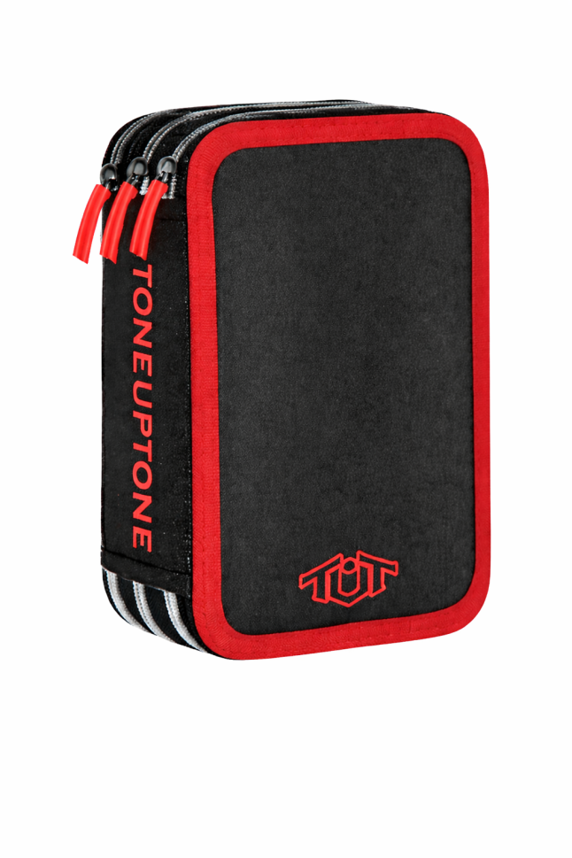 TUT Neon несесер с 3 ципа, ПЪЛЕН, червени кантове