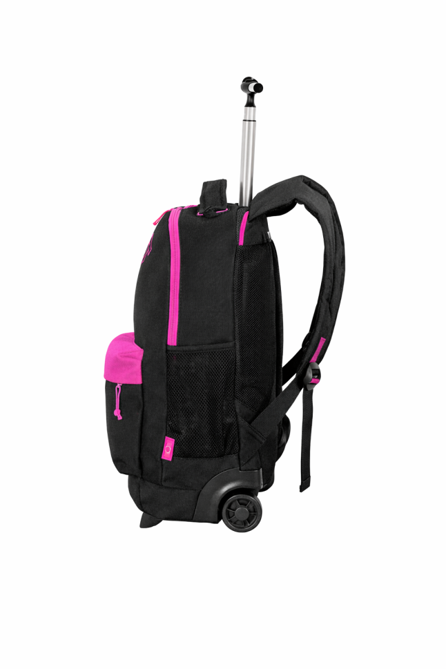 Практична и модерна раница с колелца, създадена за максимален комфорт в училище и при пътуване. Моделът съчетава удобството на класическа раница с функционалността на куфар – благодарение на стабилната телескопична дръжка и здравите колелца.