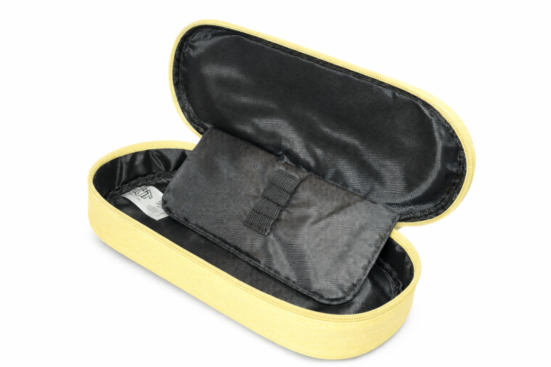 Изработен от устойчив текстилен материал с фина текстура, несесерът е лек, но здрав, и предпазва надеждно съдържанието си. Просторното основно отделение побира химикалки, моливи, маркери и други аксесоари, а здравият цип осигурява лесно и сигурно затваряне.