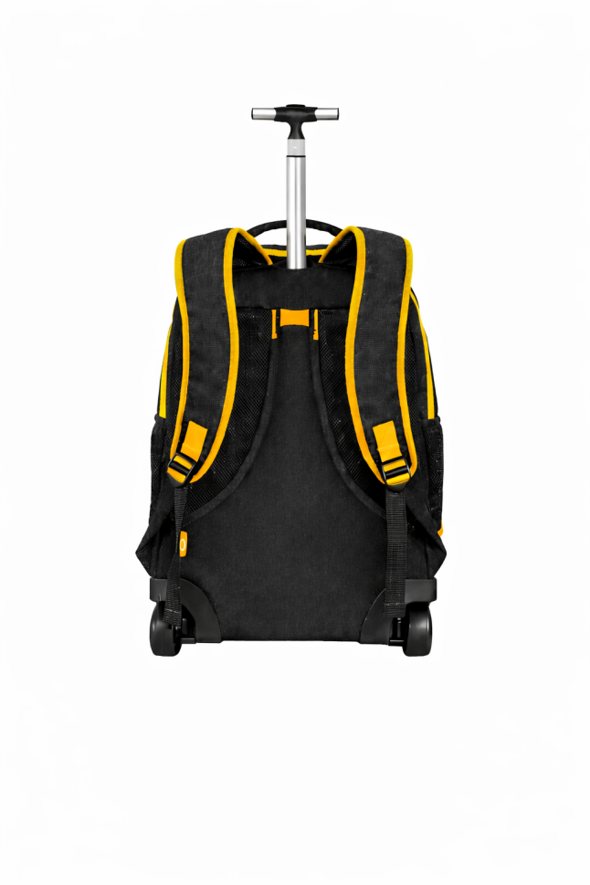 Практична и модерна раница с колелца, създадена за максимален комфорт в училище и при пътуване. Моделът съчетава удобството на класическа раница с функционалността на куфар – благодарение на стабилната телескопична дръжка и здравите колелца.