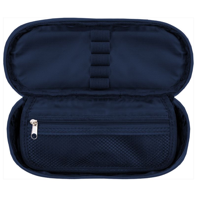 Изработен от устойчив текстилен материал с фина текстура, несесерът е лек, но здрав, и предпазва надеждно съдържанието си. Просторното основно отделение побира химикалки, моливи, маркери и други аксесоари, а здравият цип осигурява лесно и сигурно затваряне.