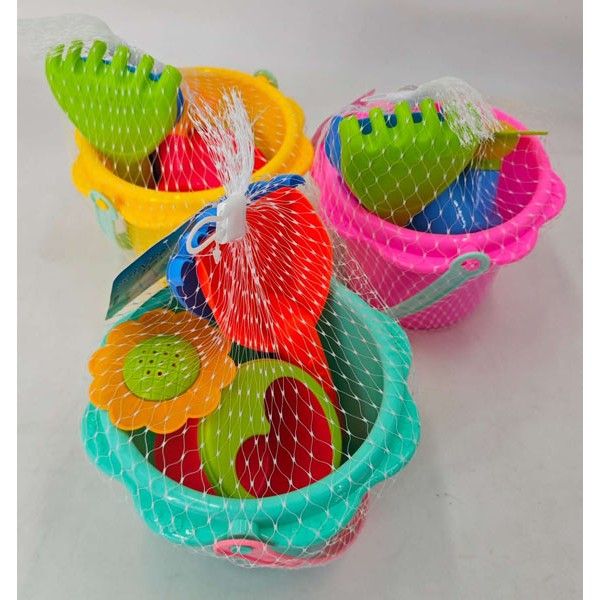 Кофа за пясък Цвете с аксесоари В комплекта има: кофа за пясък 20х20х23 см, 2бр. лопати, лейка и формичка. Различни цветове Доставка според наличностите
